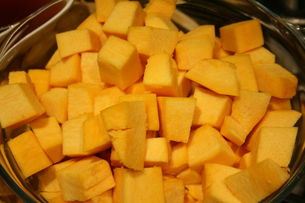 The soft flesh of half a pumpkin diced into roughly 2cm pieces (cut around 1cm if using white rice)